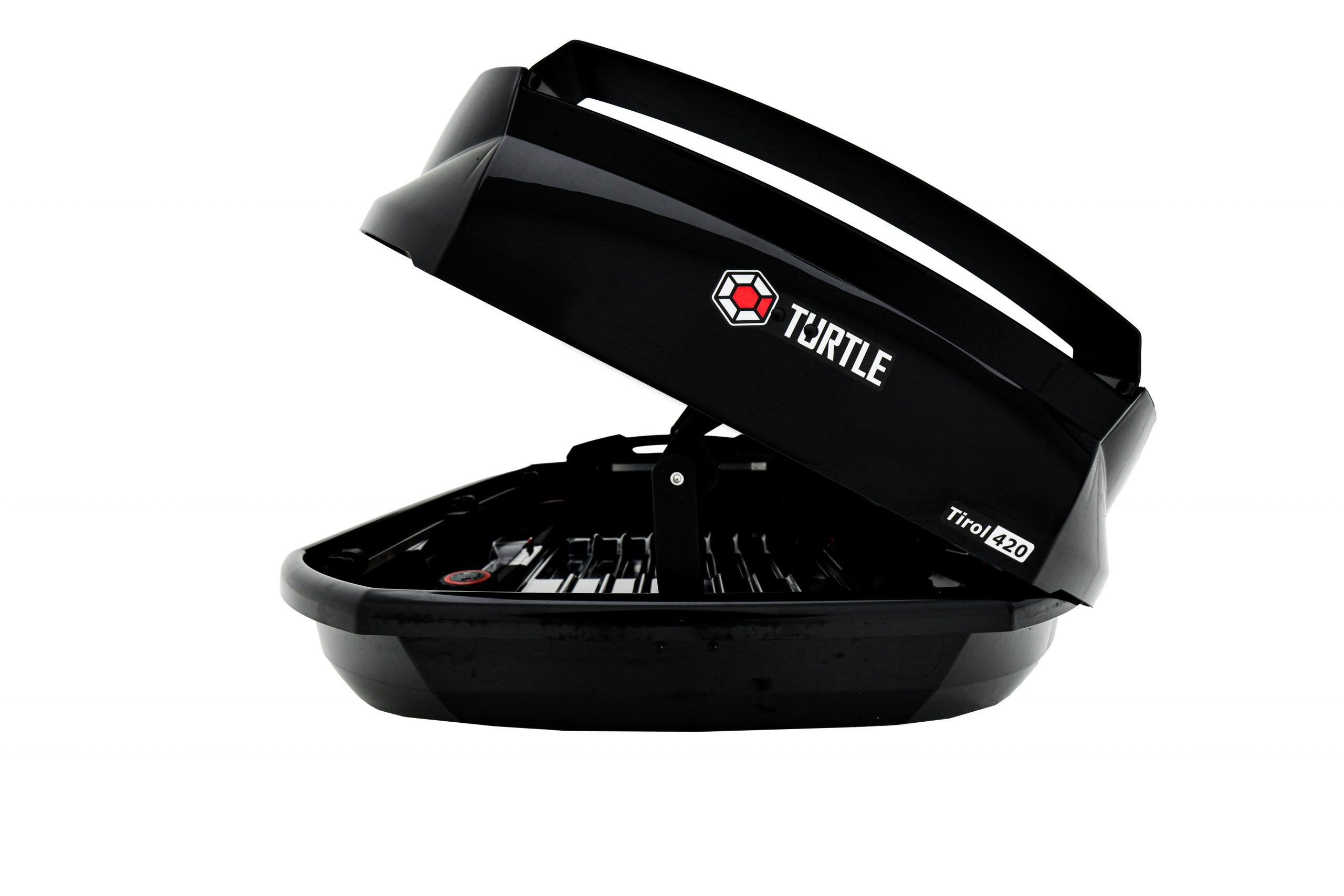 The Turtle Port Baggage Tirol series improves your vehicle’s aerodynamics with its spoiler, enhancing your driving comfort and fuel efficiency. It features a design that allows loading and unloading from both sides. The double-locking system ensures safe and secure closure from 6 points.
